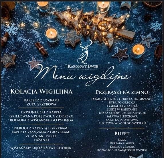 Kolację Wigilijną proponujemy w Karolowym Dworze - w klimatycznej sali przy kominku, blasku świec i akompaniamencie kapeli góralskiej (muzyka na żywo). Dowozimy Gości na kolację i z powrotem.